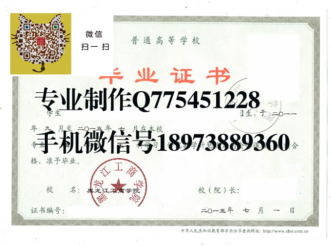 黑龙江工商学院毕业证编号 (电子注册号)示例 :13300 1 2008 06 006826