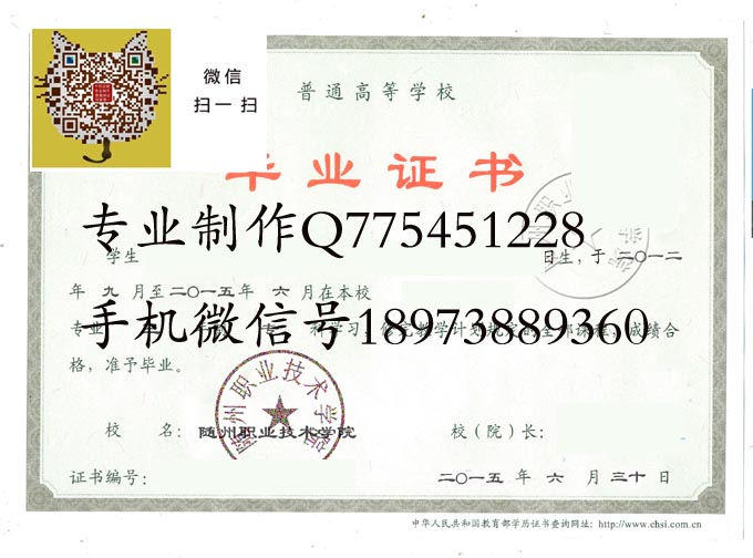 随州职业技术学院毕业证编号 (电子注册号)示例 :12980 1 2008 06 006826