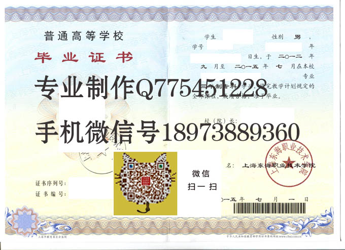 上海东海职业技术学院毕业证编号 (电子注册号)示例 :10851 1 2008 06 006826