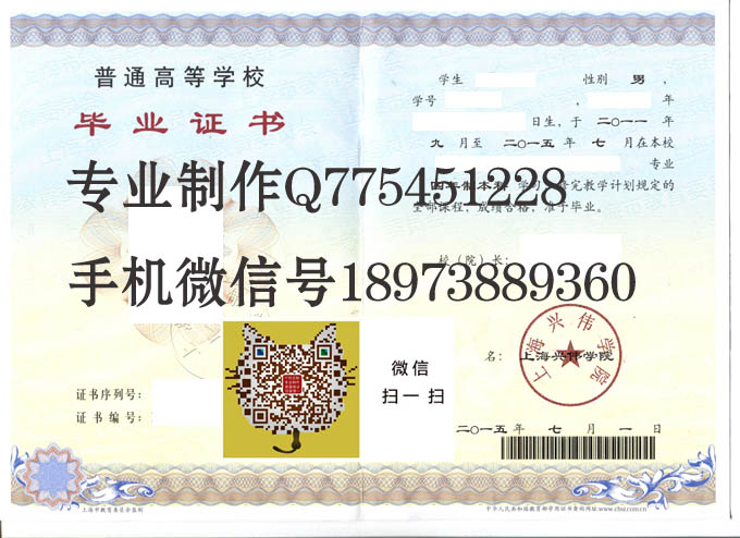 上海兴伟学院毕业证分类、打印规则、相片要求、签名章:
