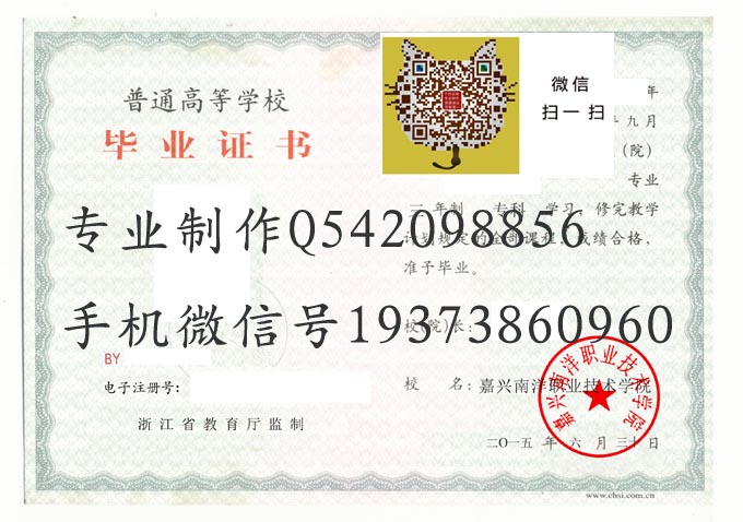 嘉兴南洋职业技术学院毕业证分类、打印规则、相片要求、签名章: