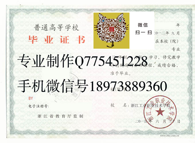 浙江工业职业技术学院毕业证样本国标代码 :12871