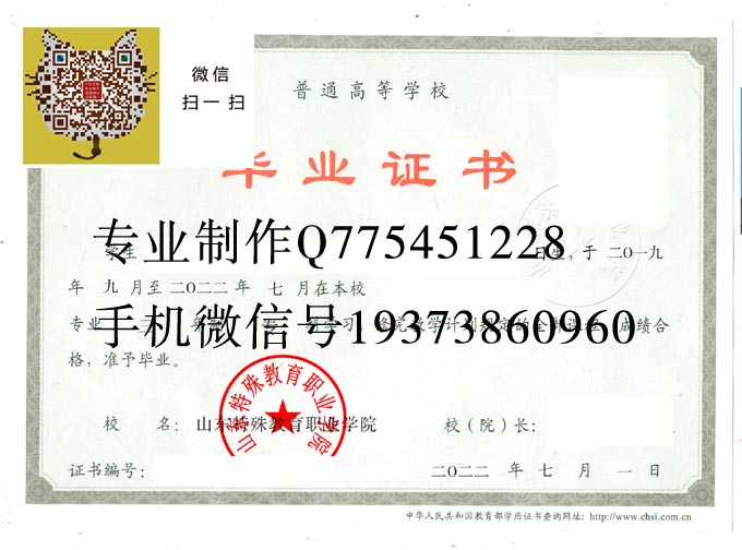 山东特殊教育职业学院毕业证分类、打印规则、相片要求、签名章: